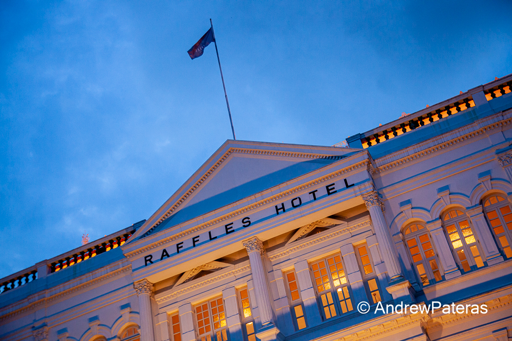 I set my alarm for 6 am, but I have been in so many time zones over the last six weeks, an alarm seems pointless. Regardless, I woke up with a lot on my agenda today. I have a long list of things to see and do, courtesy of my friend Shalabh who knows Singapore well and told me exactly what to see. Thanks Shalabh! My morning started with breakfast and a walk through Little India. After that, I dropped into the Wanderlust hotel. This hotel was featured on the Discovery Channel for being a building made completely of art. Each guest room has a different theme. I noticed that the entire city really looks to the artistic eye to provide a lot of the features. Whether it be beautiful sculptures or the buildings themselves, the city is very different from any city I have visited before. As an artist, I liked this aspect of the city very much and as you will see below, I tried to capture the essence of it in my images. Arab street was the next stop and both sides of the road were lined with textile and spice shops. There was a promenade leading to the Sultan Mosque with Middle Eastern restaurants, cafes and Shishe bars on both sides. I then walked across the entire city on Orchard Road, the city’s backbone and it holds the largest number of retail shops I have ever seen in a single place in the entire world. The shops and plazas seemed like they went on forever! Every major designer had what seemed like ten stores in each of the malls that went on for miles. This is a city built with the shopaholic in mind. Along with the massive, high end shopping malls, there were first class hotels with multiple supercars parked out front. My walk then took me to the Singapore Botanical Gardens. At this point I had been walking for six straight hours, so I decided to jump on a bus to take me back to the other side of the city. The Marina Bay Sands topped it all off. It is an architectural marvel and is one of the biggest shopping centres I have ever been in. This hotel/residence/casino/shopping mall is also very different, as you will see from the many photos I took. I also enjoyed a very traditional meal of Singapore noodles in the huge food court. The walk around the Marina and then through the central business distinct yielded some great new shots, and it made me wish I had the 17mm tilt shift lens I have had my eye on. As the sun disappeared over the horizon, I arrived at my last stop for the day, the historic Raffles Hotel. After photographing the grounds, I headed into the “Long Bar” for the famous Singapore Sling. It was developed by a bartender at the Long Bar, sometime before 1915. I have never tried one, but it was actually very good. I normally don’t like spending $30 for a drink, but I was fine with it this time since it’s a cultural experience. The Long Bar is also the only place in all of Singapore that you can throw things on the ground. They provide you with fresh roasted peanuts and you are encouraged to litter! The recipe for a Raffles Singapore Sling is:
