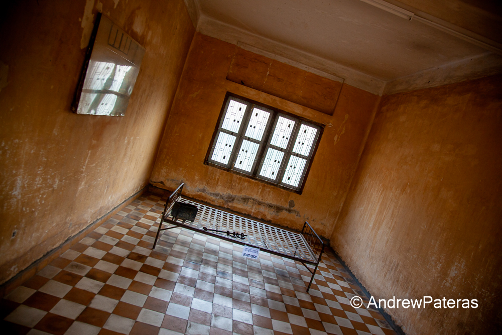 Landing in Phnom Penh, the heat and humidity hit me like a wall. I have gone through all four seasons over the last few weeks and I have arrived in a hot and sticky summer once again. I have a little more time in Cambodia, so my plan was to move a little slower to let my body have a rest after the 18 hour days over the last 2 weeks. Phnom Penh has a number of things that I wanted to check out, mostly to do with the Genocide that happened here just over 30 years ago. My first stop was the Killing Fields at Choeung Ek. This remembrance monument and park is about 15 kilometres from the centre of the city. I hired a Tuk Tuk for the afternoon to take me to all of the spots I wanted to see for about $20 USD. Arriving at the park, I was immediately shown a video that described what happened here. At this very location, there were over 20,000 people slaughtered by the communists. Across the country, over 3 million people were murdered. It was chilling walking through the areas where the mass graves were excavated. There is a 40 metre concrete remembrance monument that holds the bones, sculls and clothing of those that were murdered here. The thing that upset me the most was the killing tree that was used by the executioners to beat infants and babies to death with. After leaving noticeably distraught, I asked my driver to take me around to explore and photograph local life. I needed a short break before heading to S.21, the interrogation centre and prison. Prisoners were interrogated and tortured here before being sent to the killing fields. S.21 was not altered or touched to preserve the look and feel of what went on here. The iron beds, chains and shackles are still in the prison cells and a lot of the interrogation and execution devices are on display throughout the prison. Photographs of broken and lifeless bodies were very upsetting to both me and others that were visiting. The uncensored and raw images are on display to show people the evil that existed here, only a short time ago. After this long day of history, I walked the shore of the river and found a restaurant to enjoy a traditional Cambodian dinner of fish, fresh veggies and rice served in a coconut shell. My next stop is Siem Reap where I will be checking off another bucket list item.